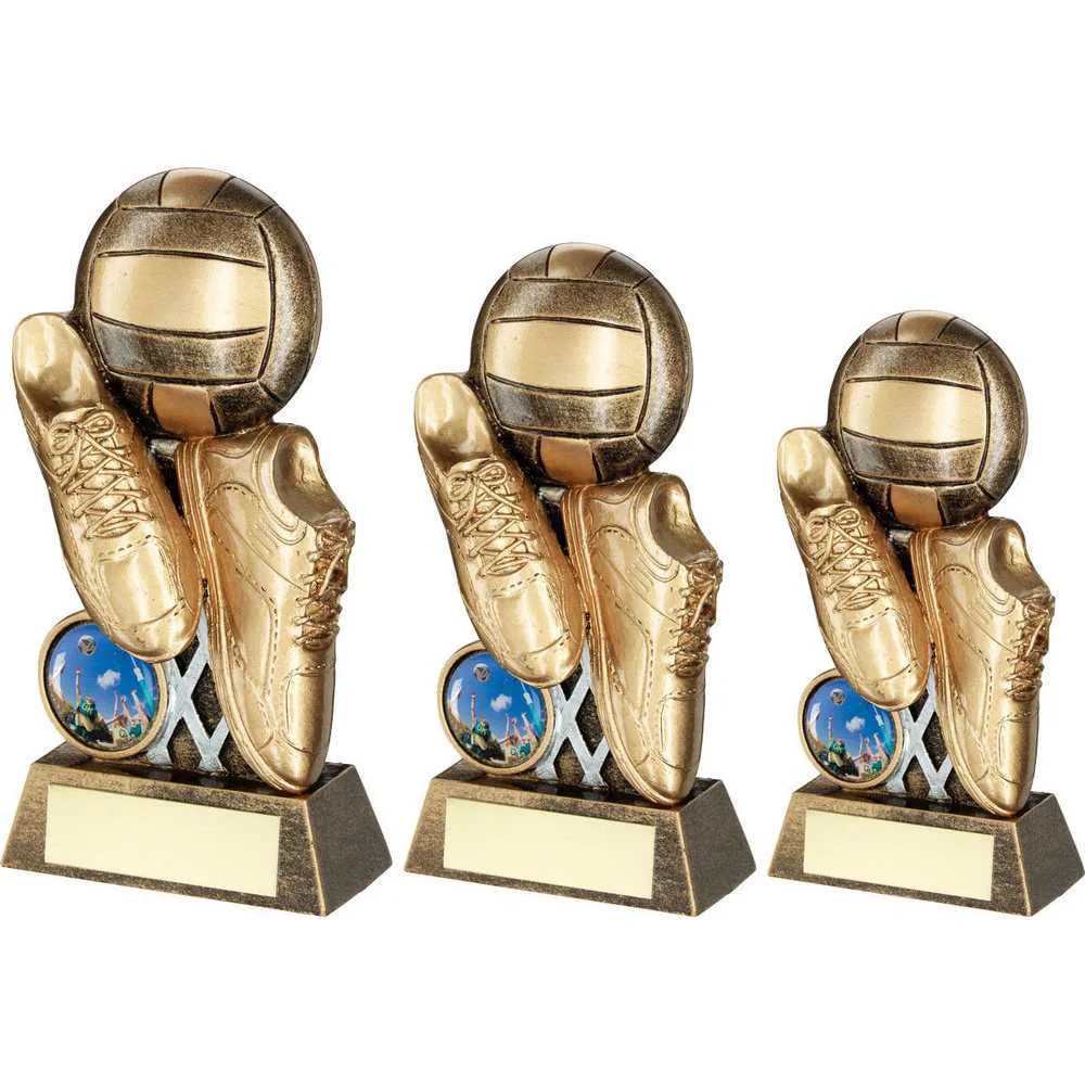 Brz/gold Flatback Netball Trainers And Ball With Plate (1in Centre)