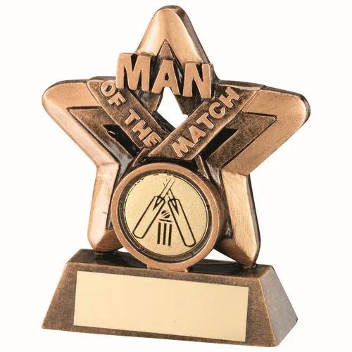 Brz/gold Man Of The Match Mini Star With Cricket Insert And Plate - 3.75in