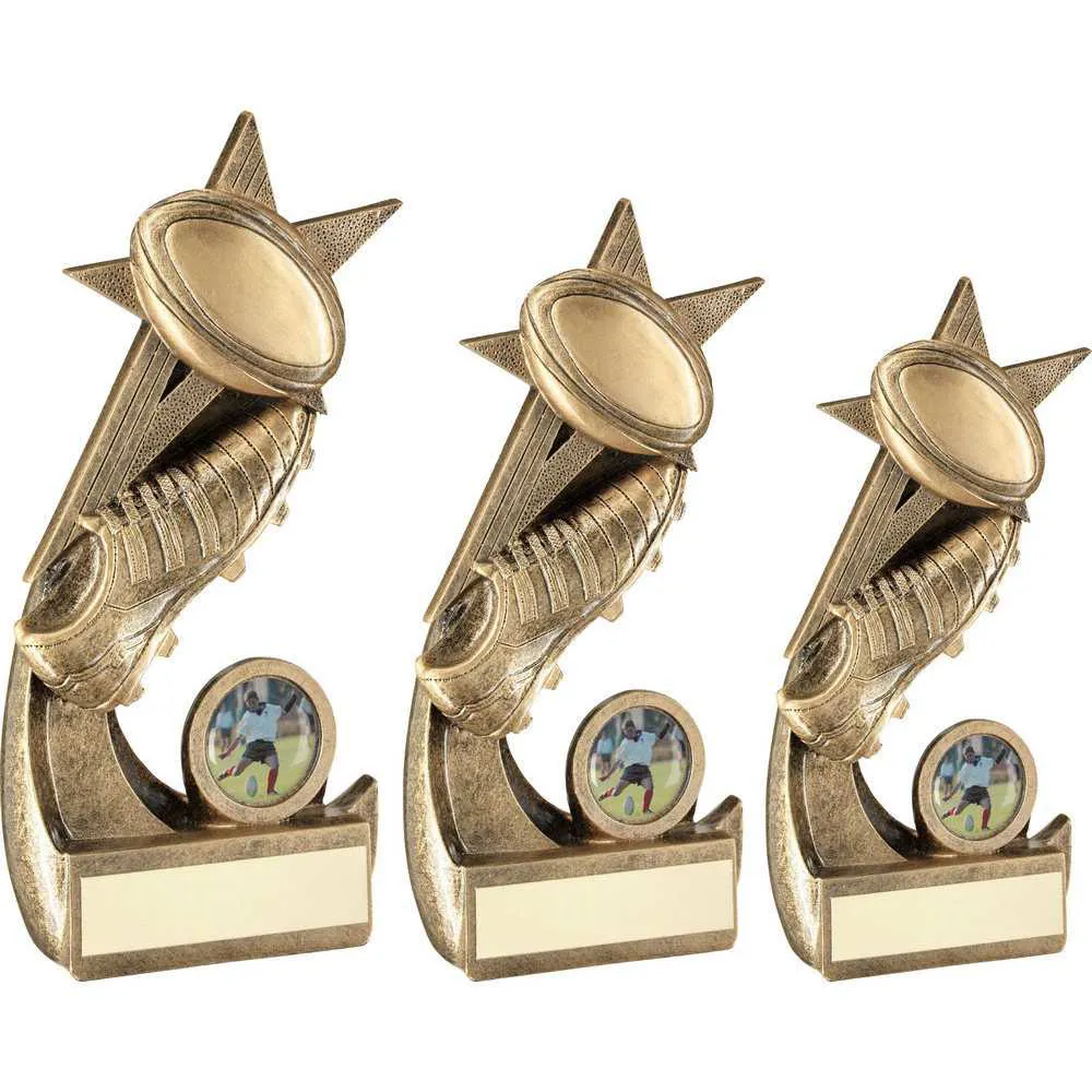 Brz/gold Rugby Ball And Boot On Shooting Star With Plate (1in Centre)