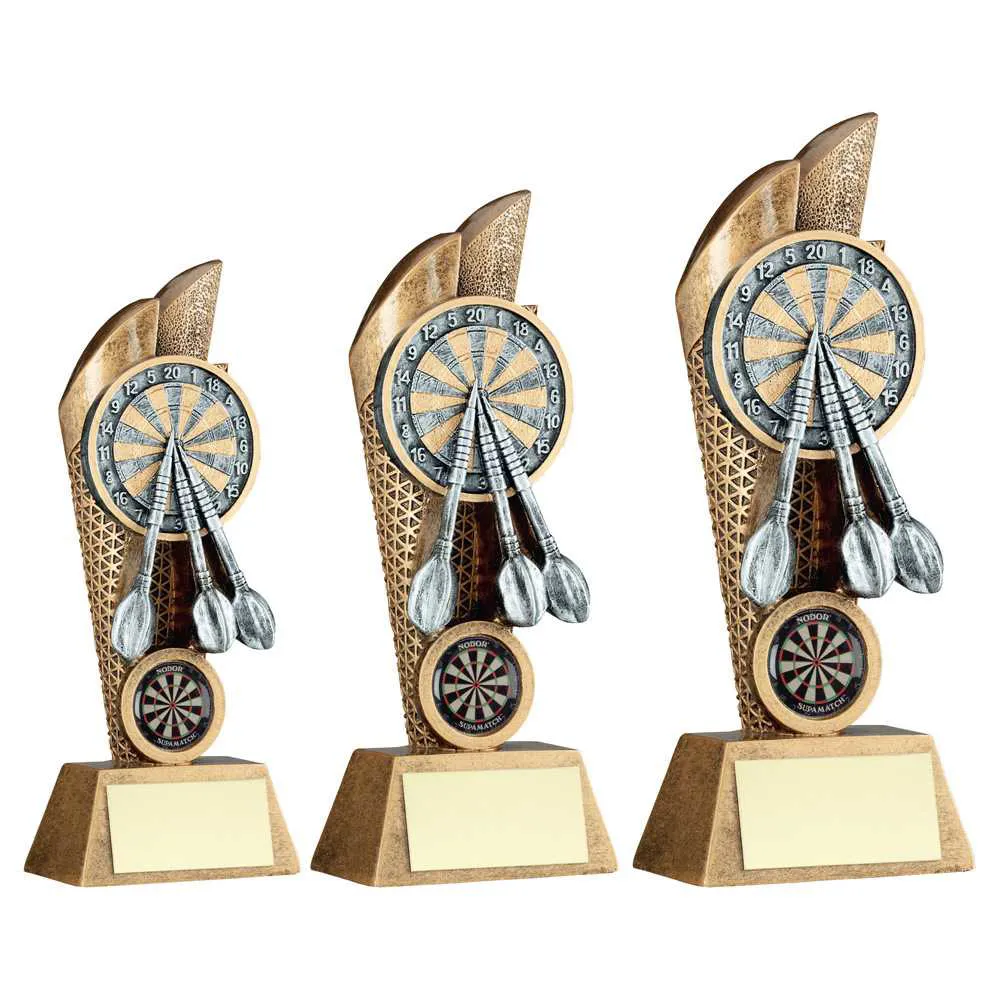 Brz/pew/gold Darts And Board On Mesh Backdrop With Plate (1in Centre)