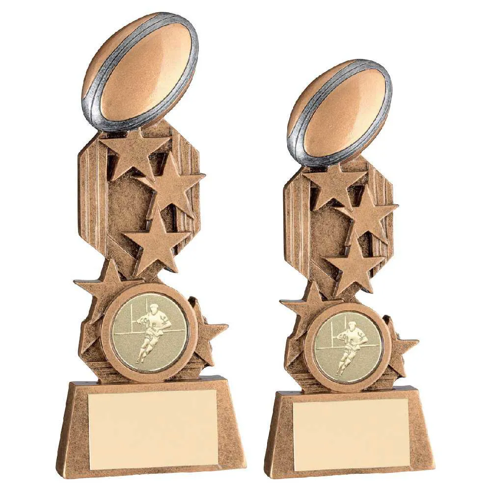 Brz/pew/gold Rugby On Stars Flatback With Plate (1in Centre)