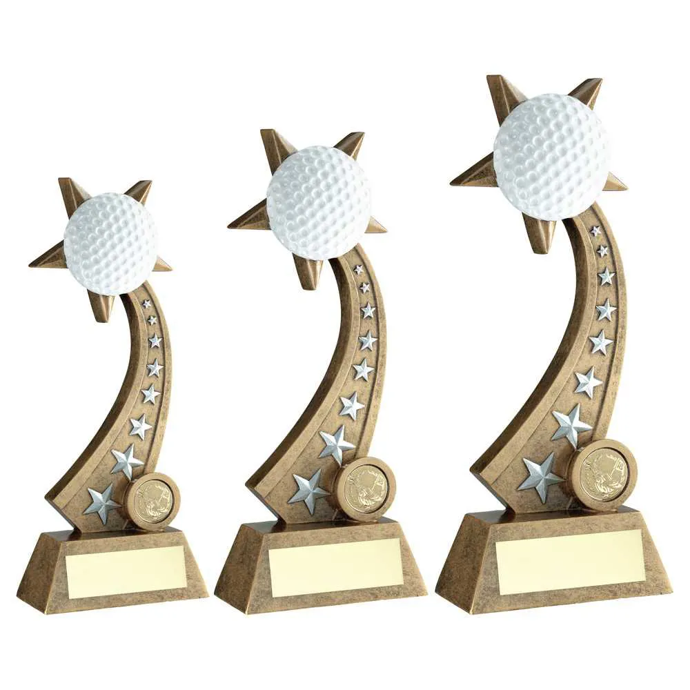 BRZ/PEW/WHITE GOLF BALL ON STAR TRAIL WITH PLATE (1in CENTRE)