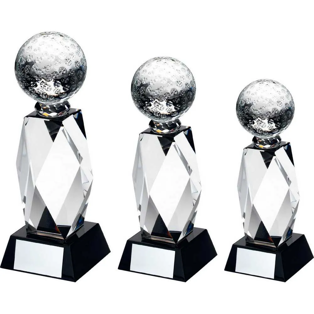 CLEAR GLASS COLUMN AND GOLF BALL BLACK BASE WITH PLATE