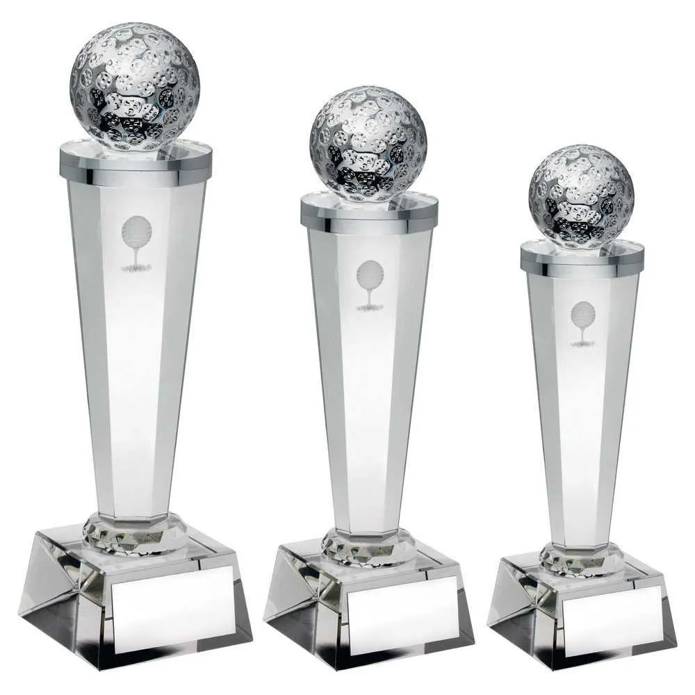 CLEAR GLASS COLUMN WITH LASE GOLF IMAGE WITH PLATE