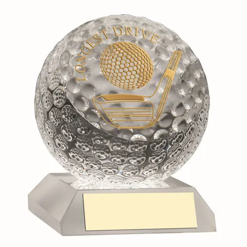 CLEAR GLASS GOLF BALL WITH PLATE LONGEST DRIVE - 3.75in