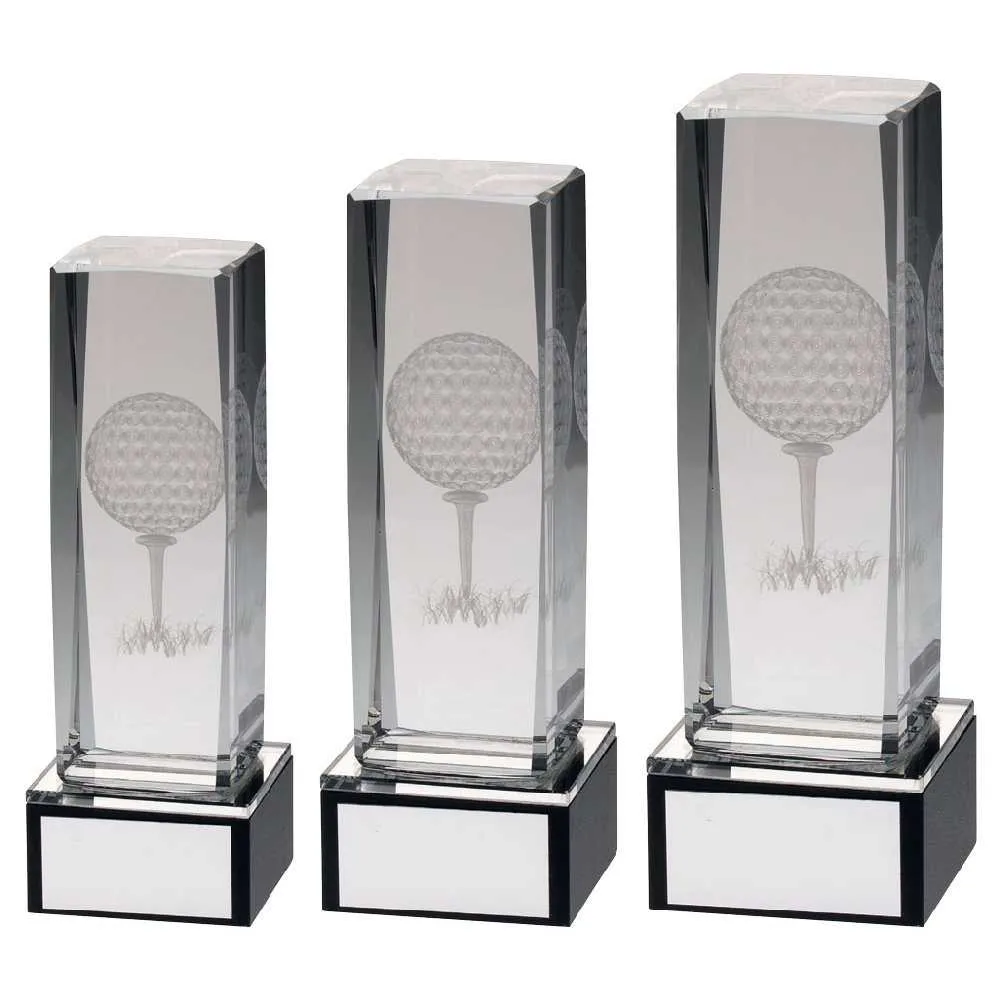 CLEAR GLASS LASE GOLF COLUMN ON BLACK BASE WITH PLATE
