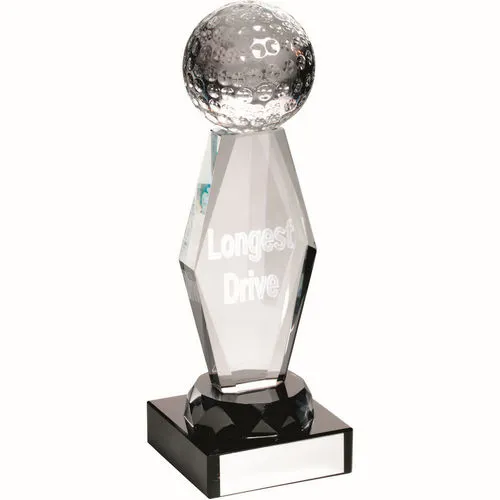 CLEAR GLASS LASERED GOLF COLUMN ON BLACK BASE L.D - 7.25in