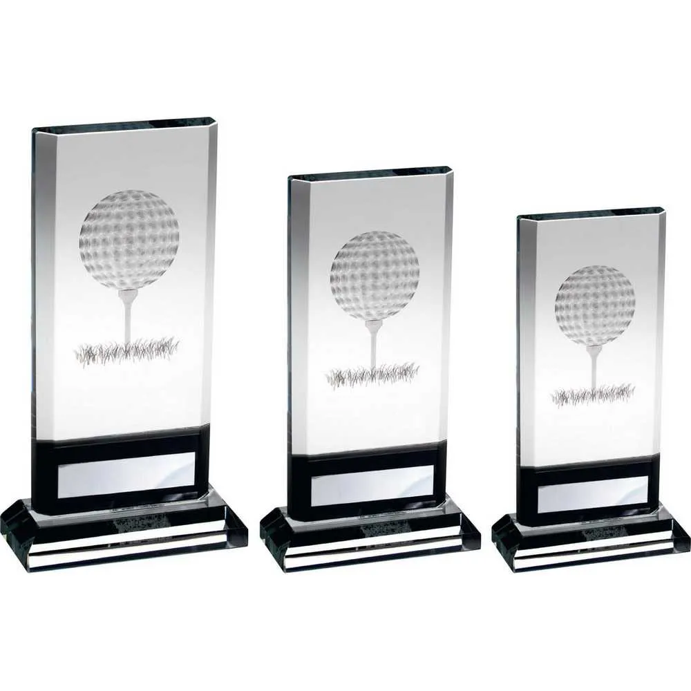 CLEAR/BLACK GLASS PLAQUE WITH LASE GOLF IMAGE AND PLATE (15mm THICK)