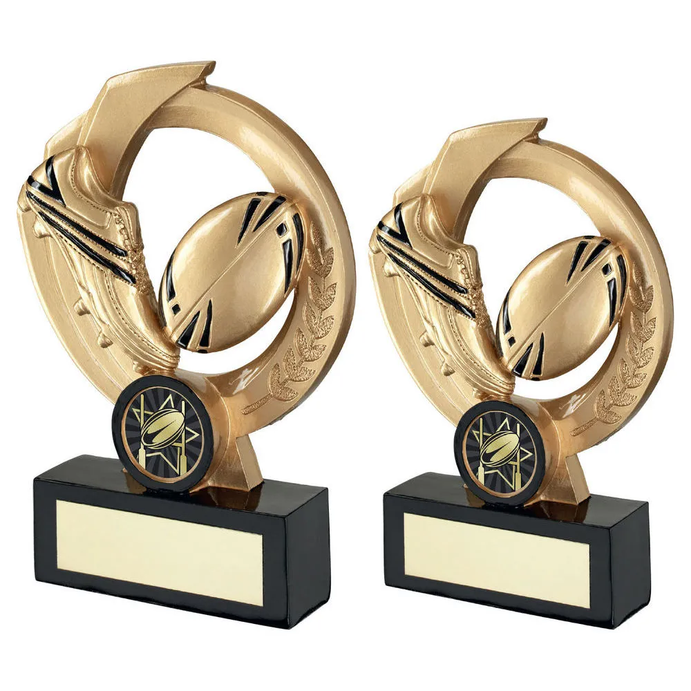 Gold/black Rugby Ball And Boot On Round Wreath With Plate (1in Centre)