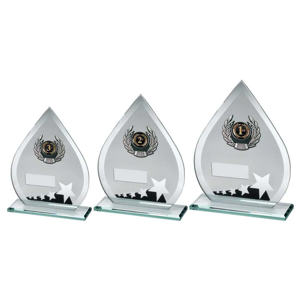 Jade/blk/silv Glass Teardrop Plaque With Silv/blk Trim Trophy (1in Cen)