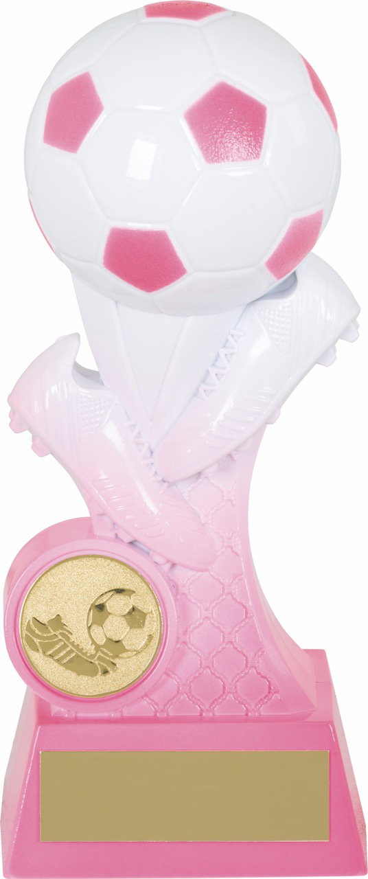 Nova Evolution Football Trophy Pink and White 8" (205mm). Available in different sizes, free engraving on the supplied plate.