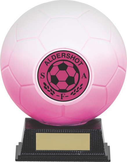 Nova Sphere Football Award in White and Pink 5.75" (145mm). Free engraving on the supplied plate, free personalisation with your club logo.