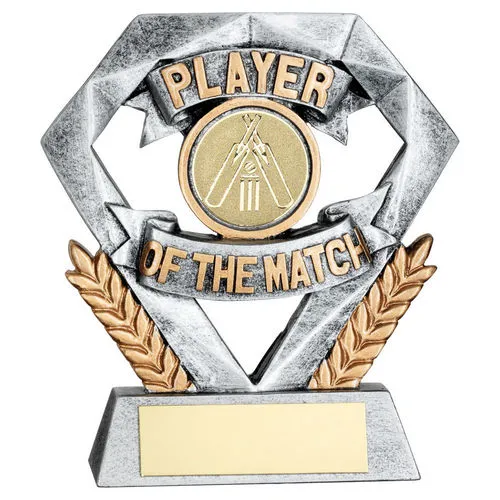 Pew/gold Player Of The Match Mini Diamond With Cricket Insert & Plate - 4in