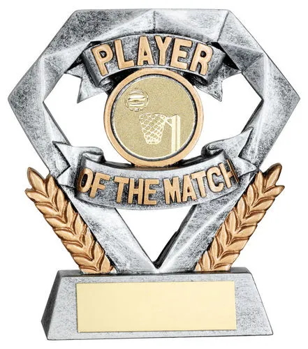 Pew/gold Player Of The Match Mini Diamond With Netball Insert & Plate - 4in