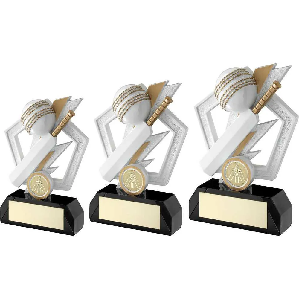 White/gold/black Cricket Bat And Ball On Pentagon With Plate (1in Cen)