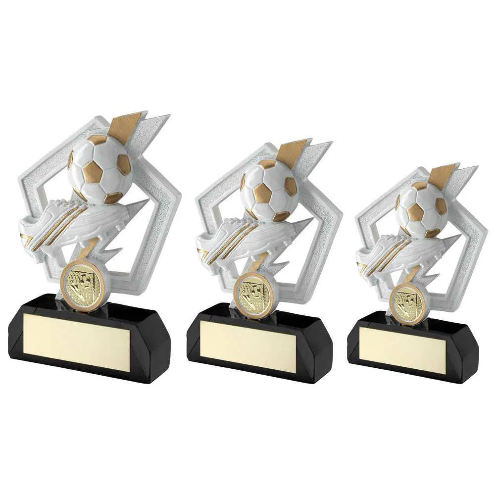 White/gold/blk Football And Boot On Flash Pentagon With Plate (1in Cen)
