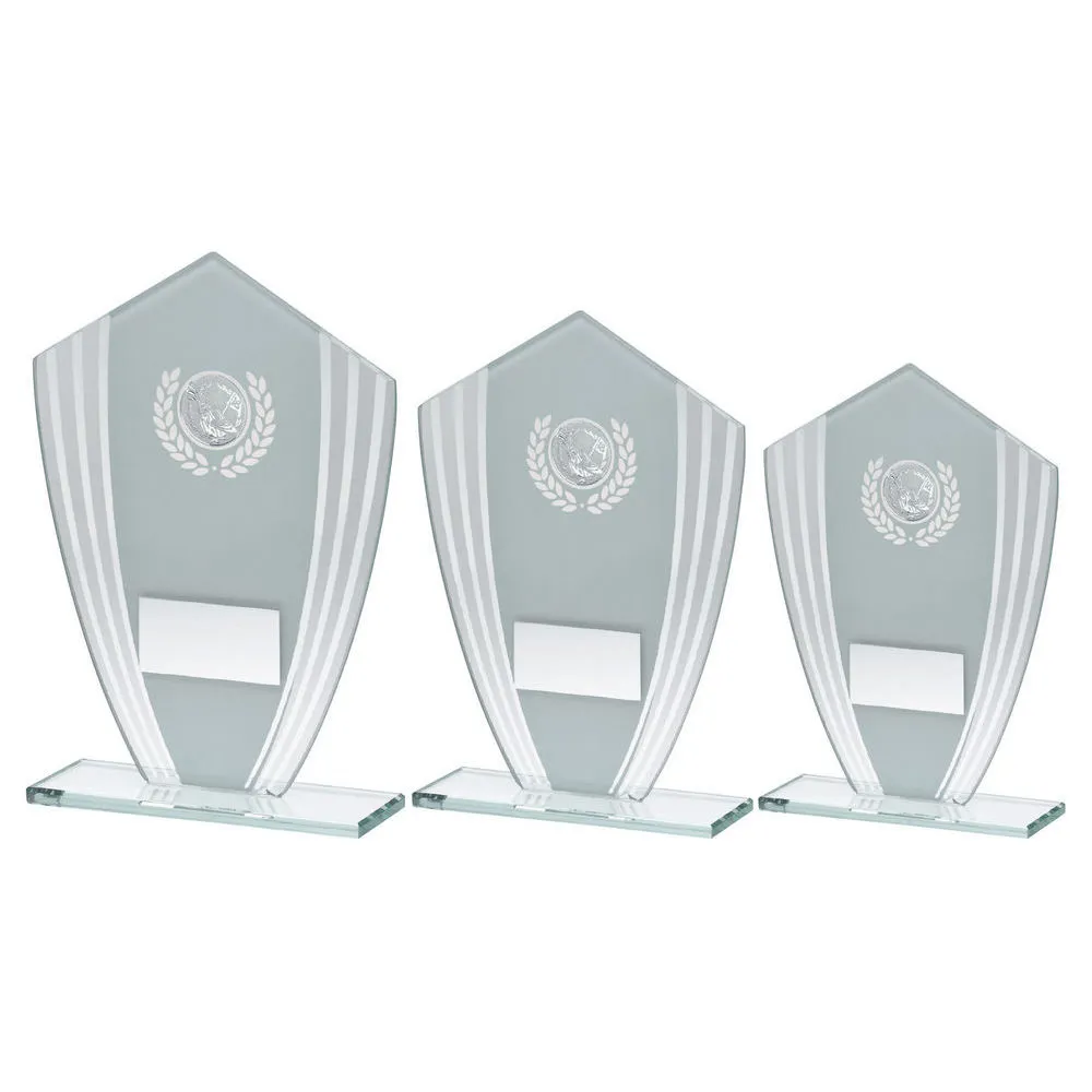 WHITE/SILVER GLASS SHIELD PLAQUE WITH GOLF INSERT & PLATE