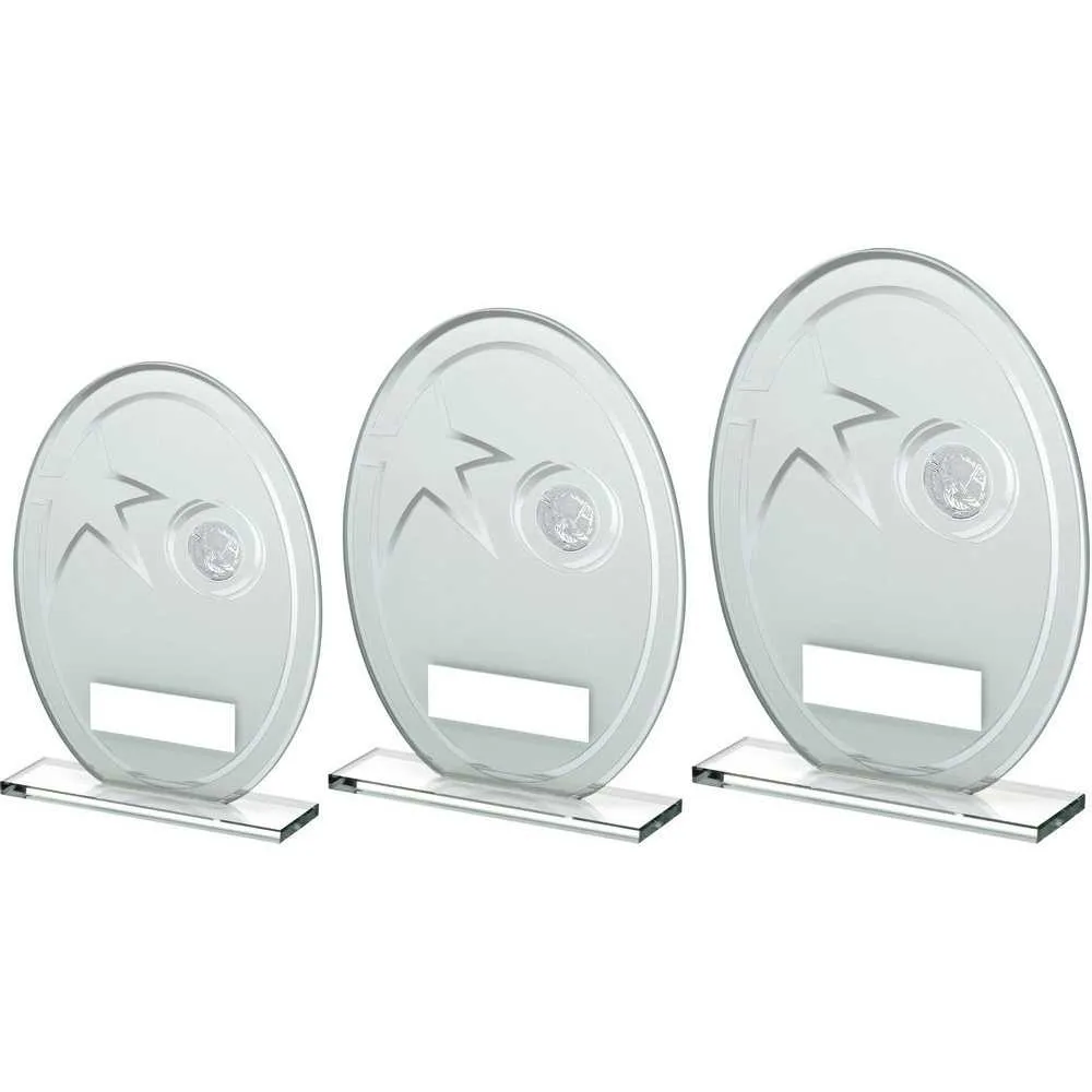 WHITE/SILVER PRINTED GLASS OVAL WITH GOLF INSERT AND PLATE