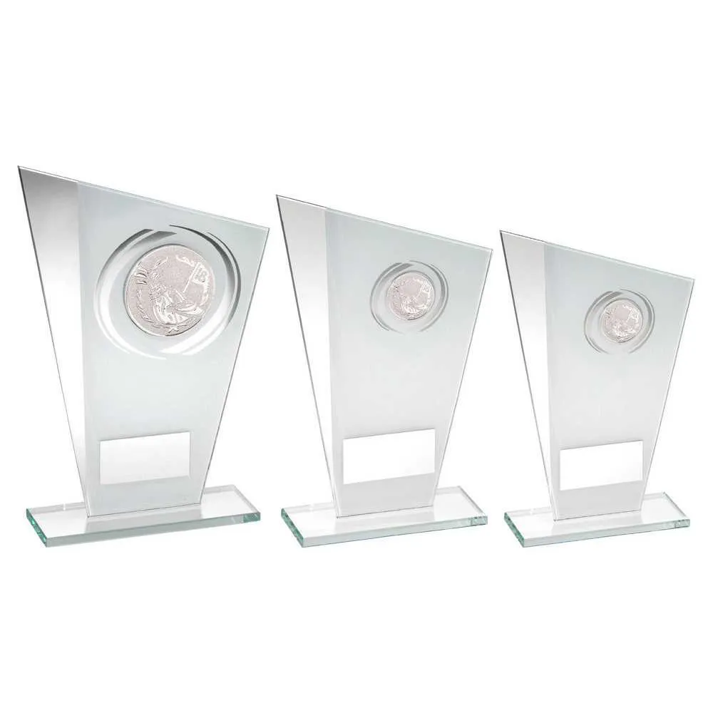 WHITE/SILVER PRINTED GLASS PLAQUE WITH GOLF INSERT WITH PLATE