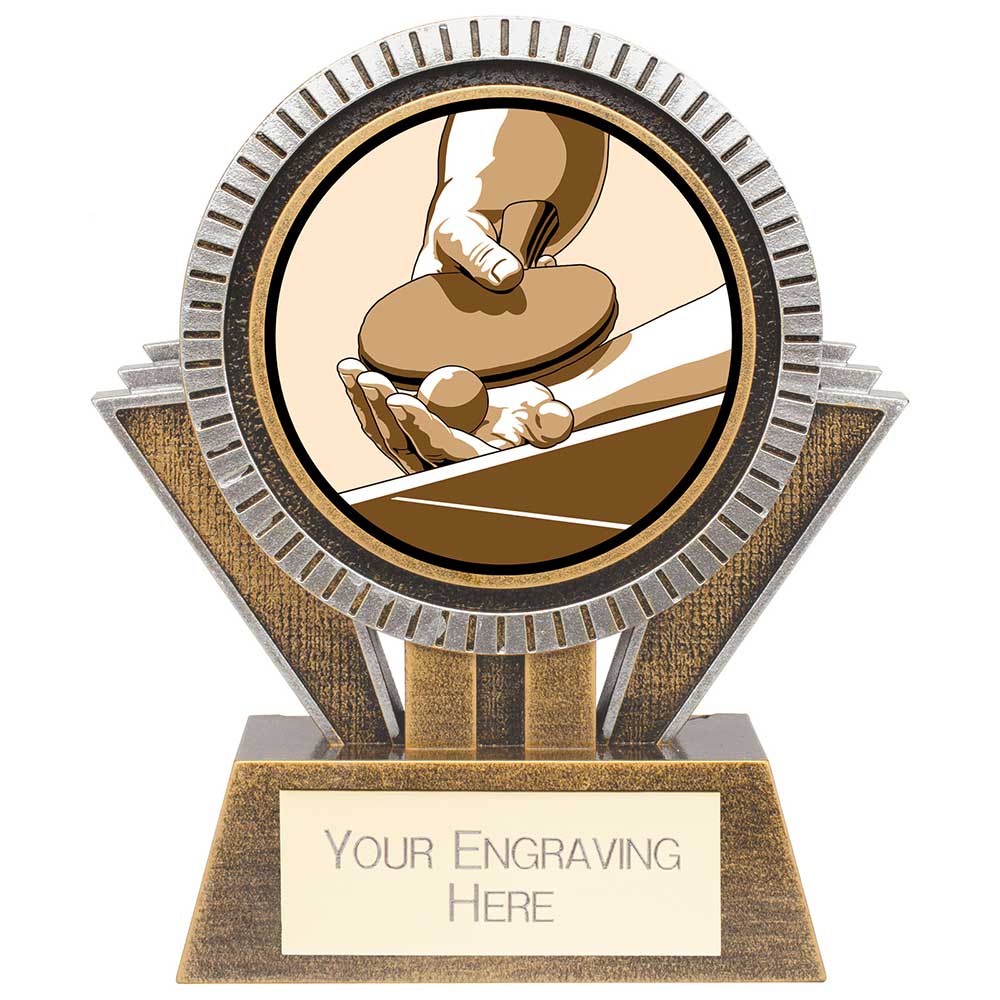 Apex Table Tennis Award Gold & Silver 130mm Available in different sizes. Free engraving on the supplied plate.