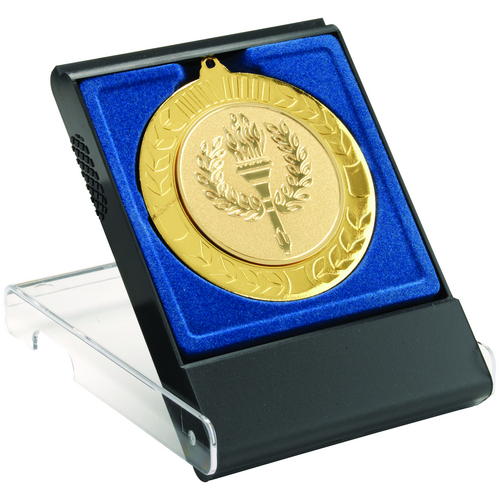 Black/clear Medal Box - Large (50/60/70mm Recess Blue Insert) 4.75in (121mm). Medal not included.