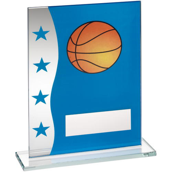 Blue/silver Printed Glass Plaque With Basketball Image Trophy - 8in (203mm)