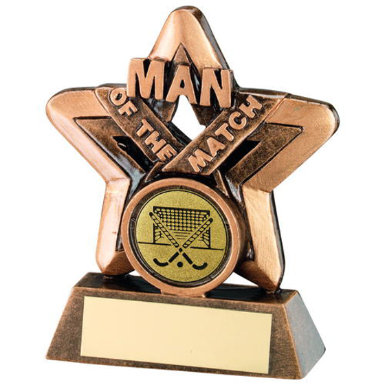 Brz/gold Man Of The Match Mini Star With Hockey Insert Trophy - 3.75in (95mm)