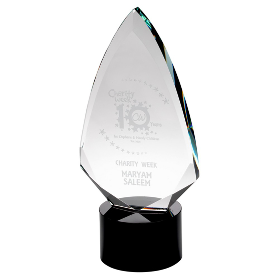 Clear Glass Arrowhead (20mm Thick) On Round Black Base - 9.75in 248mm