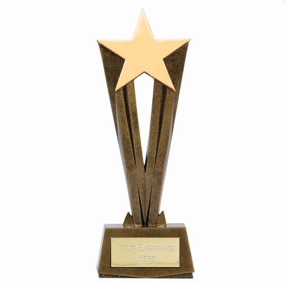 A resin bronze coloured award with a gold star on the top. Can be used for any type of award. Free engraving on the supplied plate.