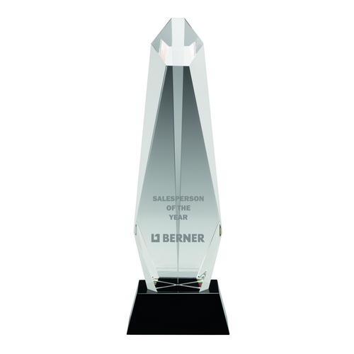 Clear Glass Hexagonal Column On Black Base - 11in (279mm). This award is supplied with a quality presentation case, free of charge.