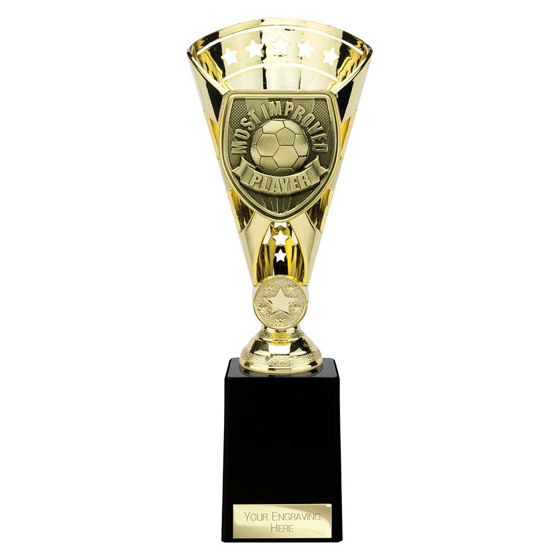 Cobra Star Cup Most Improved Player Gold 255mm. Free engraving on the supplied plate and free colour club logo.