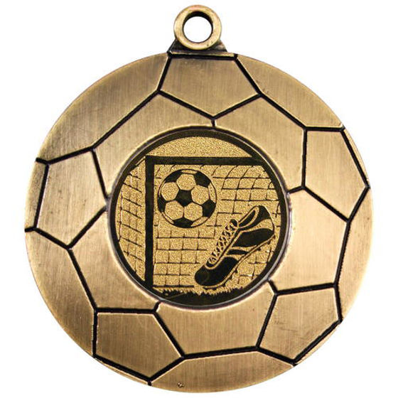Domed Football Medal (1in Centre) - Antique Gold 2in (50mm)