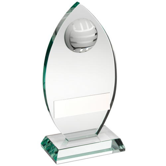 Jade Glass Plaque With Half Netball Trophy - 5.75in (146mm)