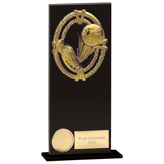 Maverick Fusion Football Boot Black Glass 200mm. Free engraving on the supplied plate and free colour club logo.