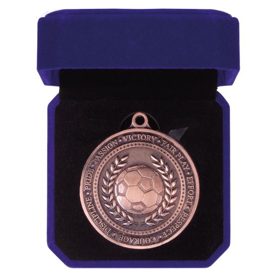 Olympia Football Medal Box Antique Bronze 60mm. Free engraving on the supplied plate