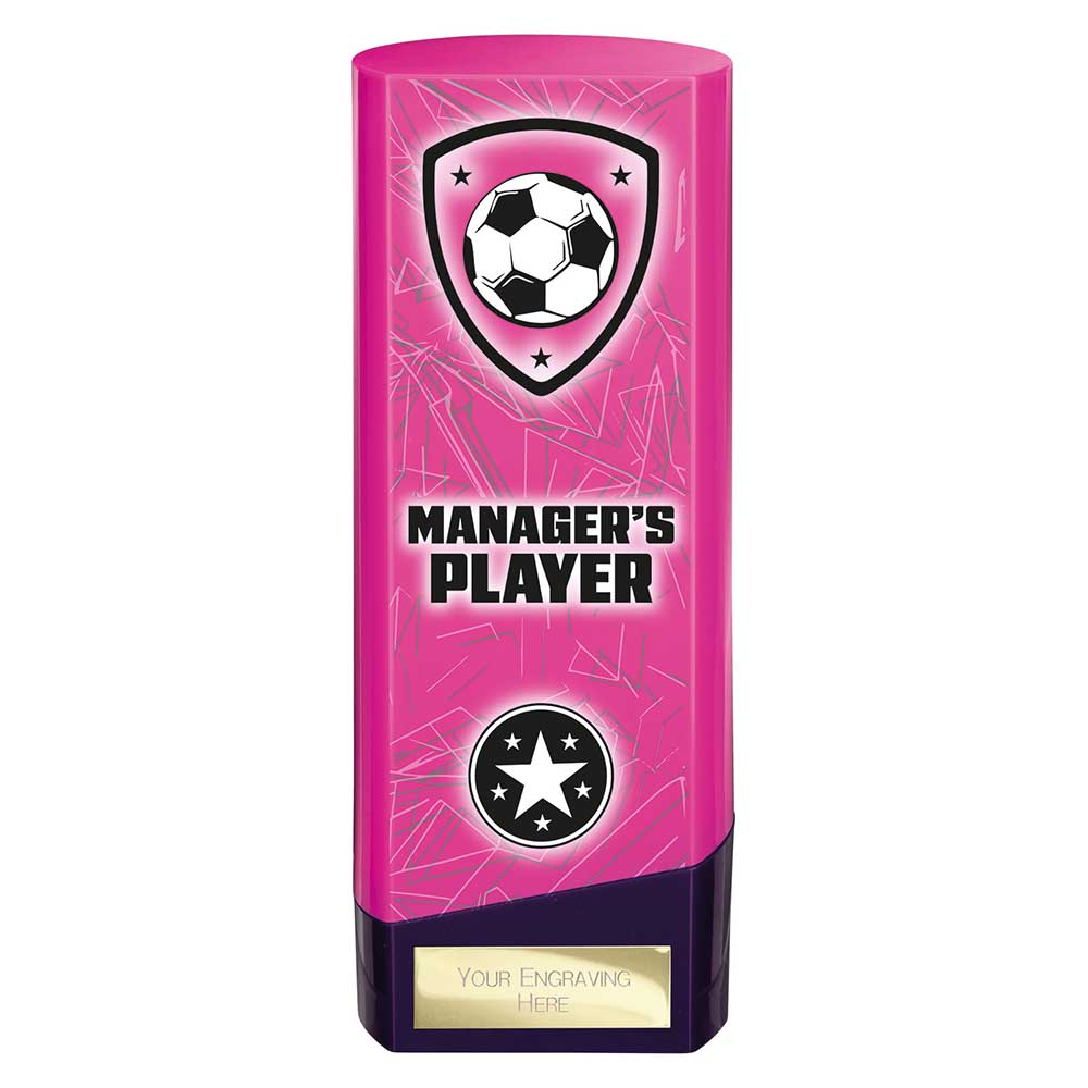Prime Heavyweight Managers Player Pink & Purple 190mm. Free engraving on the supplied plate and free colour club logo.