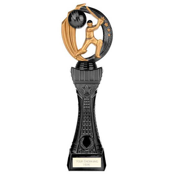 Renegade Heavyweight Cricket Award Black 310mm. Free engraving on the supplied plate and free colour club logo.