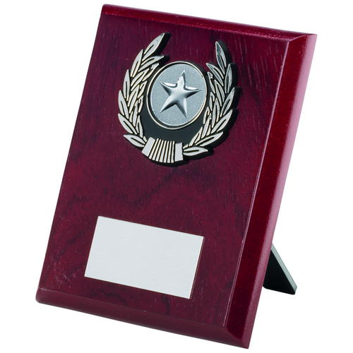 Rosewood Plaque And Silver Trim Trophy - (1in Centre) 5in (127mm)
